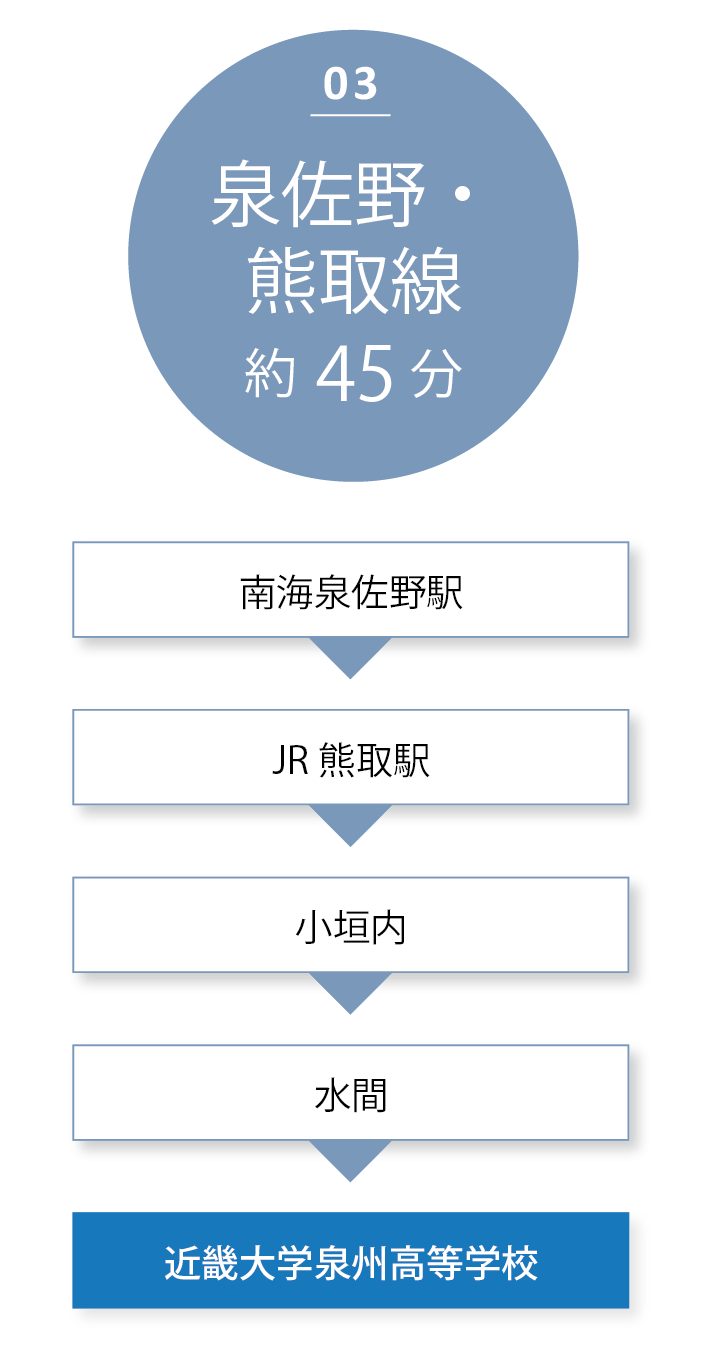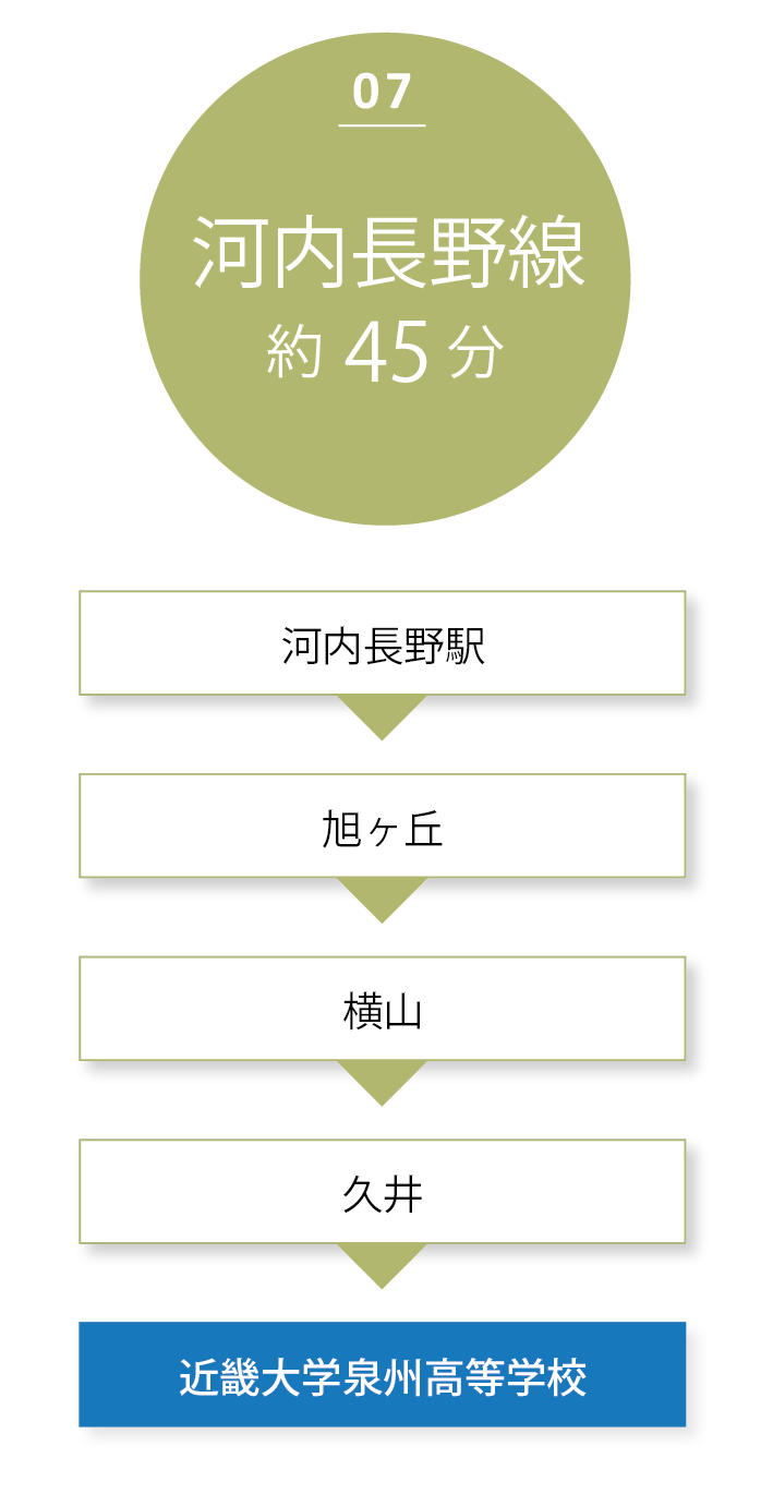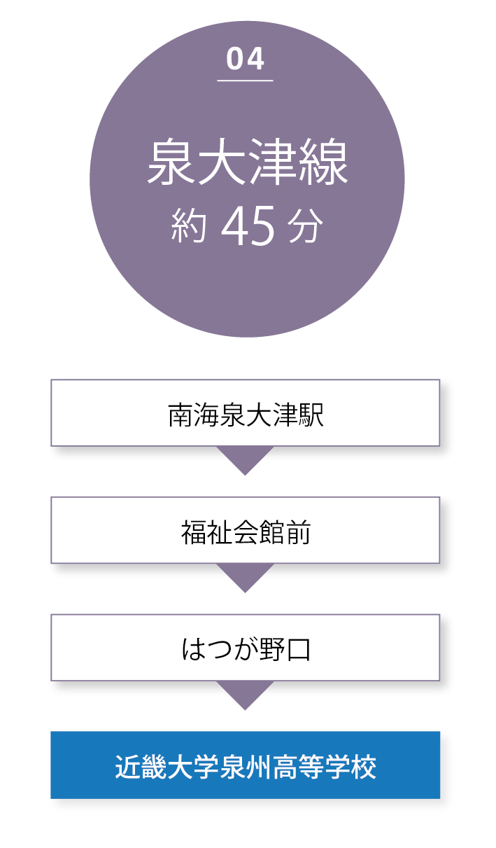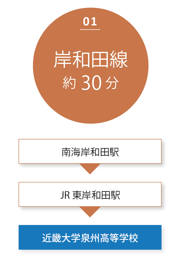 スクールバスは合わせて6路線を運行し、大阪府内・和歌山などの主要駅からスムーズに、かつダイレクトに通学が可能です。3年間の高校生活を安全・快適にバックアップします。