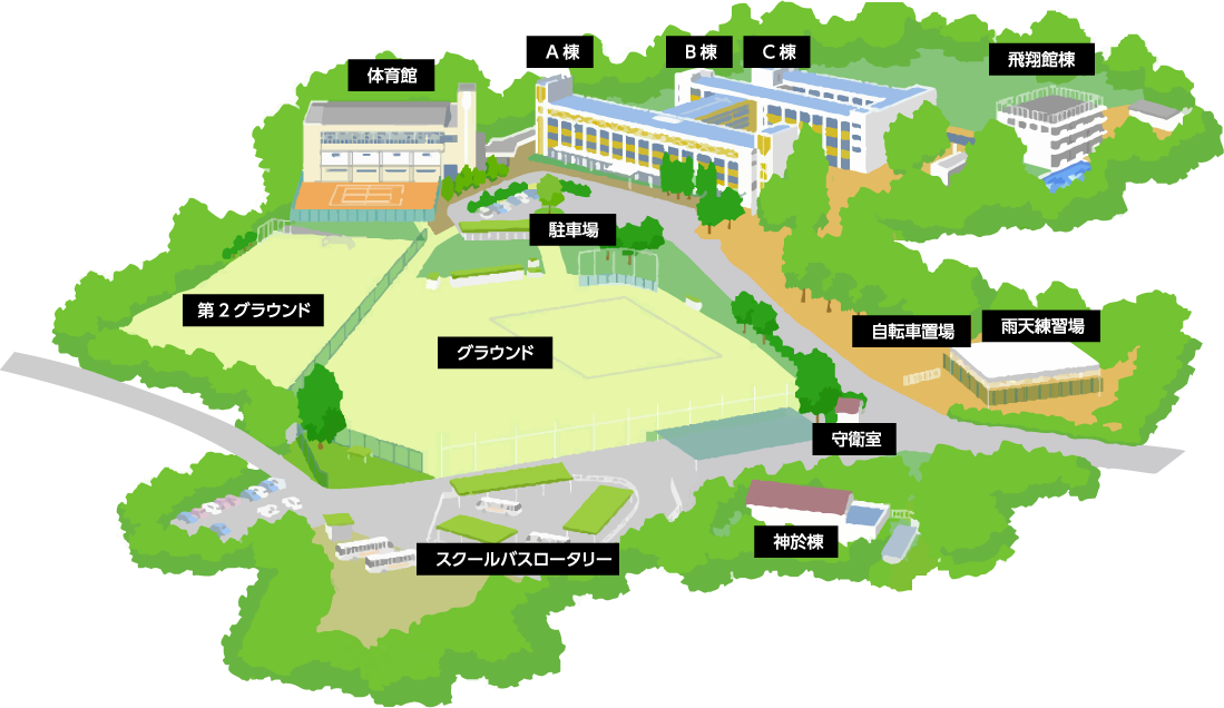 ナイター照明完備の硬式野球部の専用グラウンドと、第2グラウンドがあります。