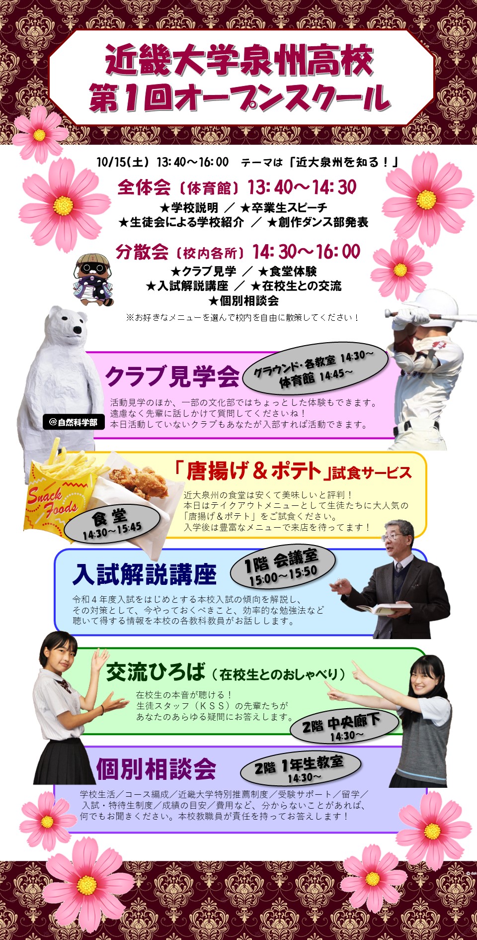 今年度の第1回オープンスクールは、クラブ見学や在校生との交流、食堂体験など盛りだくさんの楽しい企画で皆さんをお迎えします!