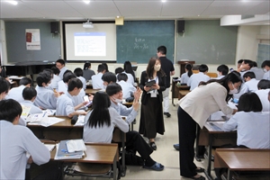 今回は(株)リクルートから講師の先生をお招きして、「スタディサプリfor SCHOOL」を利用した大学オープンキャンパス参加準備を行いました。