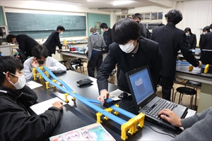 12月9日(金)、1学年の物理基礎の授業で力学的エネルギーの実験を行いました。