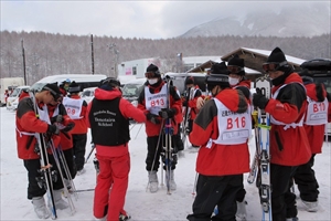 ゲレンデの駐車場に到着すると、素早く習熟度別の班ごとに分かれ、自分の指導に当たってくれているインストラクターの先生の元に集まりました。