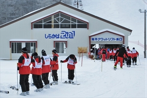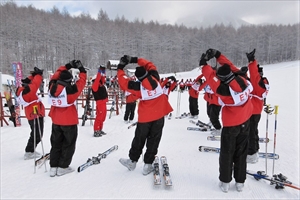 そして念入りにストレッチを行うと、それぞれのコースに向かい、順調にリフトに向かっていきました。