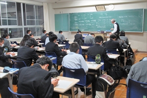 24日の木曜日、スクールバスが2便運行される機会を利用して学習会が開かれ、1学年の約3分の1に当たる50名近くの生徒が自主的に残って学習会に参加しました。
