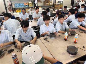 昼食を終えた後は、いよいよ陶芸体験です。指導員の方に作り方を教わり、生徒たちはみなそれぞれが思い思いに手びねりで作品を作り上げていきました。