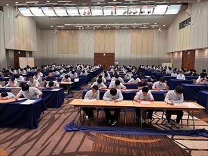 チェックインをして、制服に着替えた後は近畿大学の屋木清孝先生に「これからの大学入試と進路選択」をテーマに講演をしていただきました。