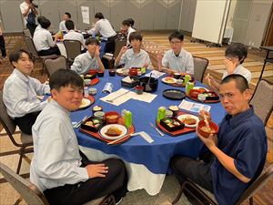 生徒たちはホテルでの最後の夕食を楽しんでいました。