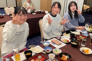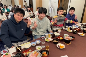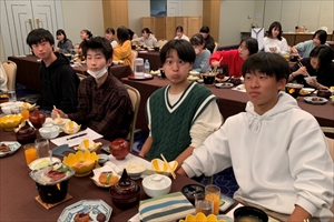 松島観光を終え、無事にホテルに到着しました。到着後はおいしい夕食をいただき、入浴を済ませて1日の疲れをとりました。