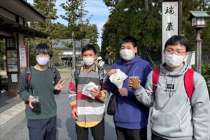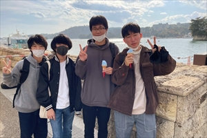 昼食終了後は、松島海岸付近の自由散策を行いました。グループごとに分かれて、お土産の購入や地元名物の食べ物を食べたりと終始笑顔で活動していました。