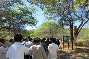 先生方からは、今日の午前に学んだこと、すなわちアメリカ人と日本人がこの場所で実際に殺し合っていた時代があったこと。