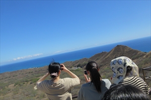 生徒たちは頂上から広がるワイキキの絶景に目を見張り、記念写真を何枚も撮っていました。