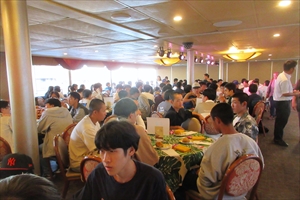 甲板で夜景を楽しんでいた生徒たちも船内に戻り、目の前で繰り広げられる迫力満点のショーを楽しむことが出来ました。