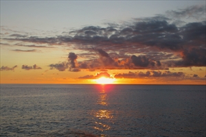 船は一時的に沖合で停止して、左舷からは夕焼けに染まるワイキキの高層ホテルの町並み、右舷からは美しい夕陽が沈んでいく様子を見ることが出来ました。