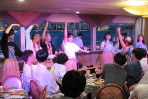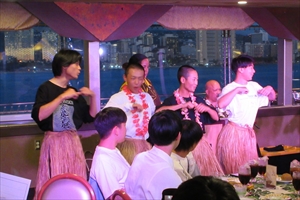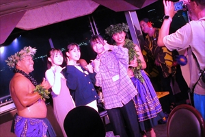 生徒たちはトレッキングで汗をかいたため、一旦ホテルに戻って着替えなどを行い、ハワイ最後の晩をサンセットクルーズとディナーショーで楽しむことになります。
