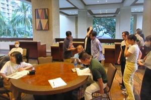 3日目の朝食は、ヒルトンハワイアンビレッジ内にあるレストランで頂きます。生徒たちはオーダーにも随分慣れてきた様子で、手際よく注文を行っていました。