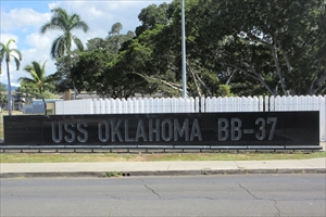 基地内は現役のアメリカ軍人の方々が行き来しており、また敷地内には真珠湾攻撃で沈没した戦艦オクラホマの慰霊碑があります。