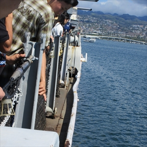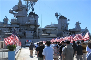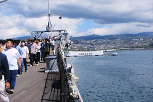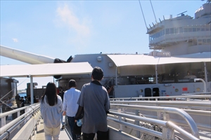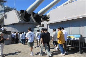 生徒たちは港内に係留されている戦艦ミズーリに向かいます。