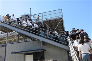 甲板の高さに上るためには、階段を何段も上る必要があります。