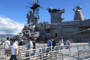 今日の午前は平和学習の一環として、パールハーバー(真珠湾)の戦艦ミズーリ記念館を訪れます。