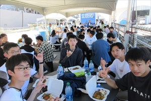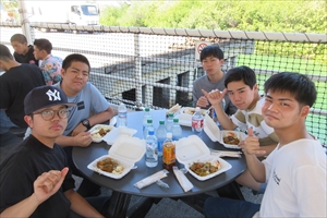 見学を終えた生徒たちはミズーリ横の桟橋で、パールハーバー特製の海軍カレーを頂きました。