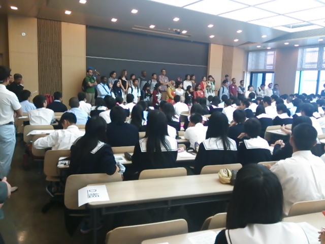 夜は大学の先生による教育講演が行われました。テーマは「進路について真剣に考える」です。