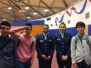 今日はJROTC(Junior Reserve Officers’ Training Corps 青年予備役将校訓練課程)を取っている生徒たちが、写真撮影の為、正装して登校していました。本校生徒も凛々しい姿のバディと一緒に授業を受けていました。