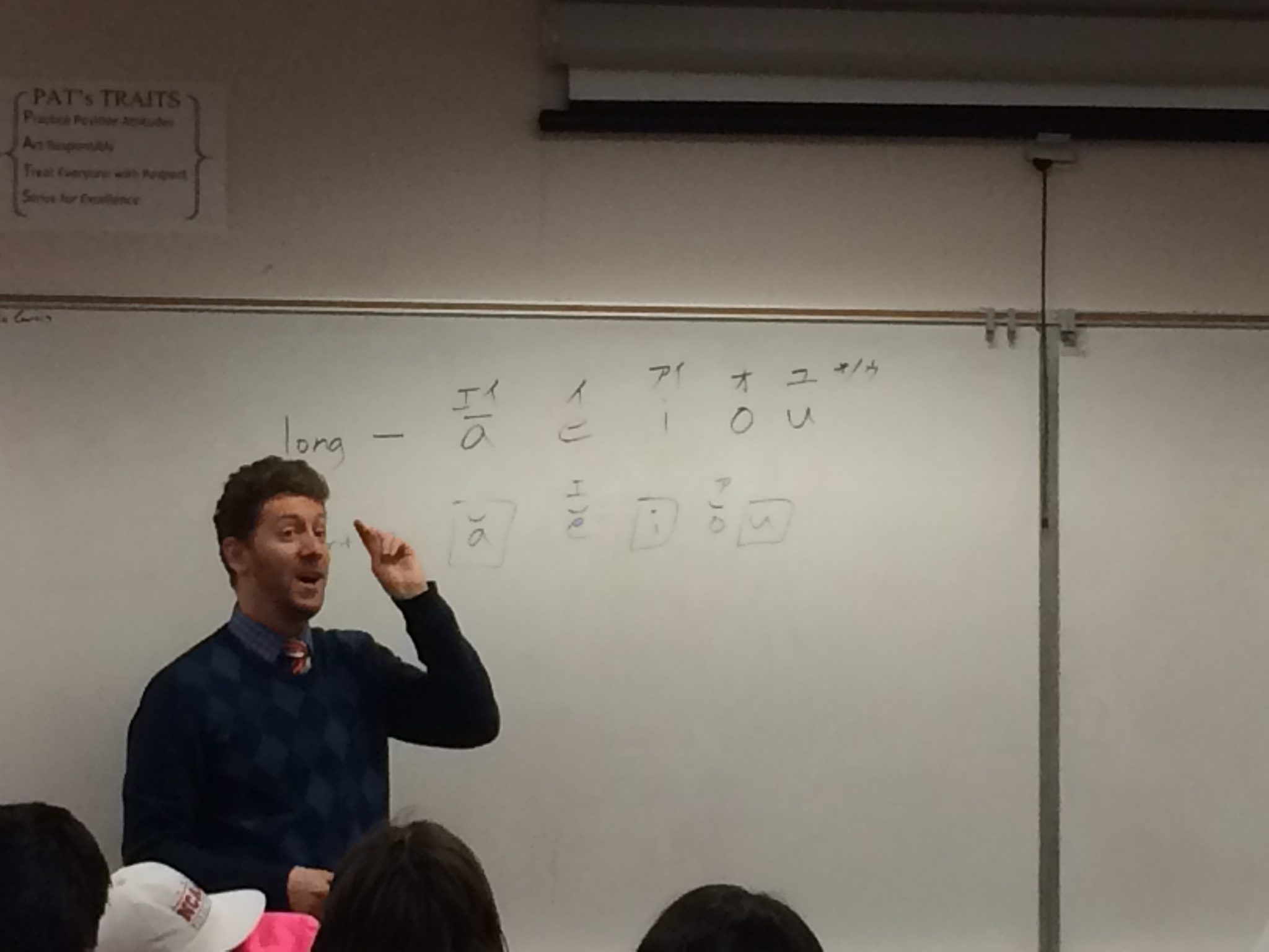今日は、1限目の最後にハーパー先生が本校生徒のために、英語のフォニックスと音節の基本について特別に授業をしてくださいました。生徒たちは、ハーパー先生の日本語と英語を織り交ぜながらの軽快な話し口にどんどん引き込まれていき、実際に発音しながら楽しく授業を受けました。