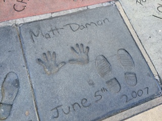夕食の前に、街並みを散策しました。アカデミー賞授賞式が行われるDOLBY THEATREや足元にハリウッド俳優のサインと手形などを見ました。知っている俳優さんの名前を見つけると、みんな興奮していました。 ⇩ブラッド・ピットのサインです。