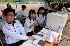 クラブ対抗リレー(生徒会企画)③ クラブ対抗リレー(生徒会企画)④ 放送席の様子(生徒会)