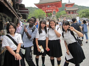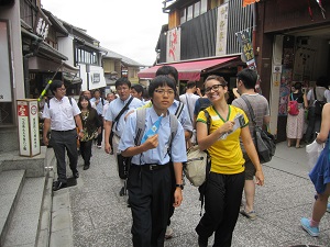 大津からバスで京都に向かい、「大学コンソーシアム京都」にて今回一緒に観光してもらう外国人リーダーとの顔合わせを行いました。やはり最初はみな緊張気味でしたが、リーダーがフレンドリーに接してくれると、各グループともすぐに打ち解けていきました。各グループは、それぞれに設定されたコースに従って、京都の有名な寺社を観光していきます。
