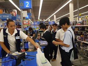 ホテル到着前にスーパーに立ち寄り、初めてのUS$利用に戸惑いながらチャレンジしていました。