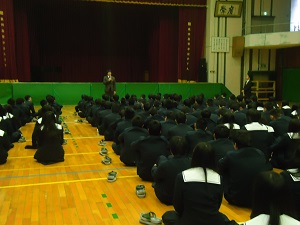 12月24日(木) 1・2年生より一足先に3年生の終業式が行われました。進路が決まった者、これからが受験本番の者、置かれている立場は様々ですが、残された高校生活は皆あとわずかです。校長先生からは、今年1年の社会での出来事を振り返りながら、大人としての自覚を持って4月からの生活を送るようにとのお話がありました。また、進路指導部長、学年主任からは冬休みのから卒業までの勉強面と生活面についてのお話がありました。
