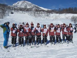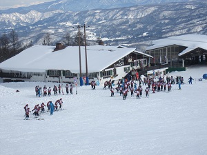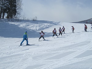 ロッジで昼食のカレーを食べた後、午後のレッスンが始まります。生徒の中には、早くも上手に滑れりだす者もいました。