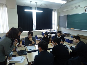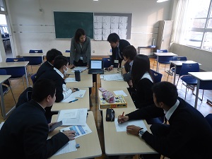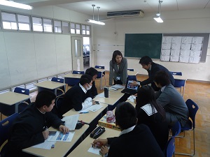 アメリカの高校生に思いを伝えるためにはどのような言葉を用いるべきか、どのような表現がよいのか、一つ一つ悩みながらの作業になりました。うまく伝わるか不安がありますが、生徒たちは生き生きと取り組んでいました。現地で上手に発表できることを期待しています。
