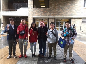 続いて、ポートランド州立大学の学生に英語でキャンパス内を案内してもらいました。ゆっくりと聞き取りやすいように話をしてくれたので、生徒たちも頷きながら説明に耳を傾けていました。広大なキャンパス内にはジムやボウリング場なども完備されており、「大学とは思えない…」という感想を漏らしていました。また、翌週に卒業試験が控えているそうで、勉強に励む多くの学生の姿が見られました。