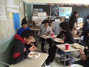 そして、ホストファミリーと日本語クラスの生徒たちが続々と集まり、farewell party が始まりました。まずは、用意していただいた食事をおしゃべりをしながらいただきました。