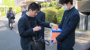 本校生徒会ではこの災害で被災された方々を少しでも支援するため、本日から募金活動を開始しました。