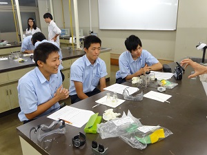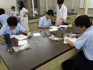 平成28年7月11日、2年A組理系選択者13名が、近畿大学理工学部で体験実験に参加しました。大学概要説明のあと、山口教授の「光る有機化合物について」の講義を受けました。