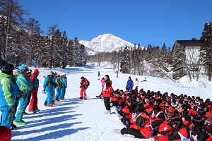 スキー合宿最終日は、少し早く起床し、朝食後、荷造りをしたあとゲレンデへ。クラス写真を撮るには最適な快晴でした。