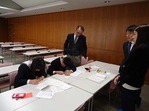 まずは研修開始を直前に控え、ホームステイについての最終的な指導が行われました。日常生活での細かい文化的相違や、現地で注意しなくてはならないことなどを、具体的な事例も交えながら説明されました。その後、今回お世話になるルーズヴェルトハイスクールで行うフェアウェルパーティーでのプレゼンテーションについて、参加生徒全員で打ち合わせをしました。