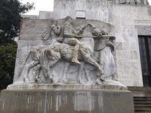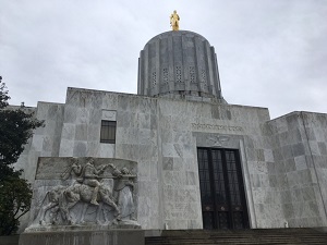 休日の間に、我々教員は朝からセーラムにあるオレゴン州会議事堂を訪れました。残念ながら本日は臨時休館日で中に入ることができず、様々な彫刻が施された外観だけを見学しました。