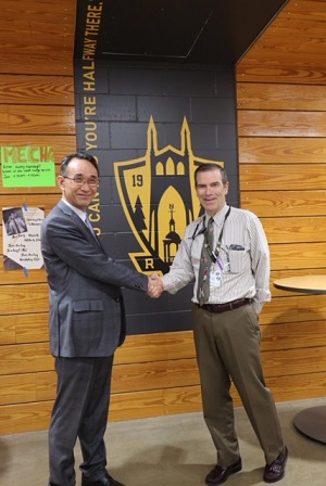 1時間目は8時15分から90分間、バディの生徒と一緒に、色々な授業を受けたようです。2時間目は引き続きシャドーイングをする生徒もいれば、日本語クラスに参加する生徒もいました。日本語クラスはきちんと起立、礼から始まり、担当のShoko先生によるスピーディーな授業展開で、簡単な日本語の挨拶、ひらがな、カタカナの復習、小テストが次々に進められていきました。授業後半、本校生徒たちは、日本語での質問・応答(お誕生日はいつですか?何年(干支)ですか?など)の練習のお手伝いをさせてもらいました。まだまだ自分から進んで発言したり、分からないことを質問したり、というところまではいきません。限られた時間の中で少しでも英語を使ってほしいものです。