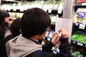 その後、スーパーマーケットで価格調査を行い、日本とアメリカの物価の違いや値段の表示の仕方、重さの単位などの勉強をしました。
