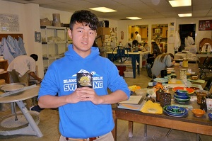 秀太くんはブランチェットの生徒の一員、といった感じで日々の学校生活が「日常」になっています。授業でも、先生方が言っている事はほとんどすべて理解していますが、まだ新しい単語が出てくると辞書が必要です。代数2の授業では日本で習っていない内容を学んでおり、少し難しいようですが、よく頑張っています。陶器製作の授業ではいくつかの作品が完成し、今はマグカップの持ち手部分に取り組んでいます。
