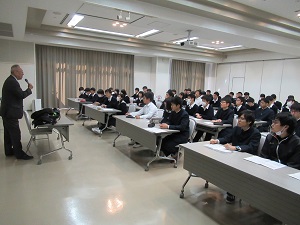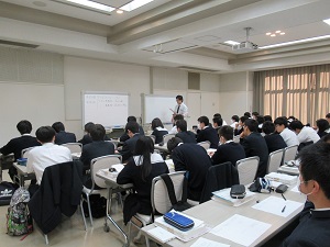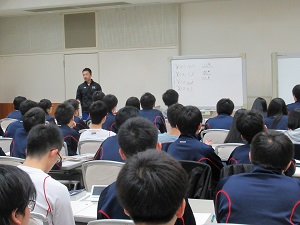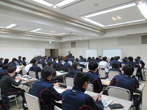 宿舎に到着後、全員が集合して開校式が行われました。越智副校長から全員に対して、受験に向けての心構えと、この四日間での取り組み方について説明がありました。