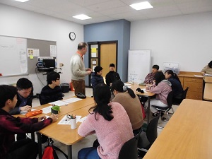 さて、今日は朝から3時間ESLの授業を受けました。Patrick先生はとても熱心な先生で日本人英語学習者のこともよくご存じで生徒が退屈にならないよう工夫をされて授業を行っていました。特に英語を声に出すということに重点を置いておられるようでした。例えば地図を見ながらポートランドの通りの名前や、ホストファミリーへの質問文など。何度も何度も反復して生徒たちは練習していました。