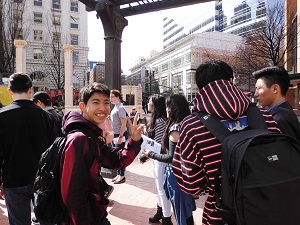 午後は昼食後にダウンタウンポートランドに行きスカベンジャーハントというアクティビティーを行いました。 与えられた7つの質問を答えるのに パイオニア・コートハウス・スクエアというポートランドの中心広場周辺を散策するというアクティビティです。