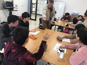 生徒はルーズベルト高校の日本語を履修している生徒さんたちとペアを組み答えを見つけなければなりません。英語がうまくしゃべれなくても何とか伝えようとする姿勢は大変良かったと思います。まだまだ消極的なところがあるので残りの数日間は今以上に積極的に英語を使っていってくれることを願います。