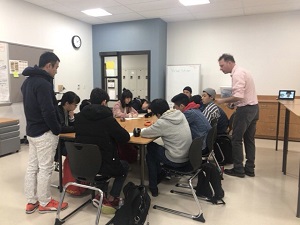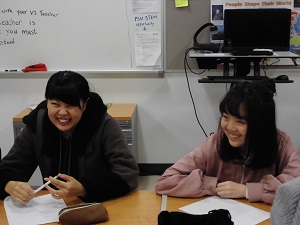 午後からは日本語のクラスのアシスタントとシャドーイング(現地のクラスの授業を見学させてもらうこと)です。日本語クラスでは、現地の学生は日本語で、本校の生徒は英語で自己紹介をするというペアアクティビティを行いました。どちらの学生にとっても語学力を向上させるいい機会になったのではないでしょうか。またKahoot!というアプリを使い、パソコンで質問を掲示し生徒はスマートフォンで答えを選び順位を競うアクティビティを楽しんでいました。