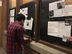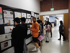 その後教室に戻り、グランドでのassembly(生徒集会)に参加しました。行われたのは先月の銃乱射事件への追悼と生徒会のメンバーらしい生徒が一人づつ銃撲滅に関して意見を述べていました。そこには州知事もおられましたが州知事はその声に耳を傾けに来ただけで何かを話すというのはありませんでした。役職のある人が来られるとその方の話を聞くと思ってしまうのが我々ですが、そうではなかったようです。集会から戻ってきた後は廊下に貼ってあるポスターの一段落を書き写し、それを先生の前で読むということも行いました。